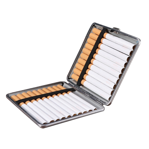 WOWO TECH Qualidade Premium Quadrado Cigarro De Metal PU Couro Portátil 20 Pack Cigarro Caixa